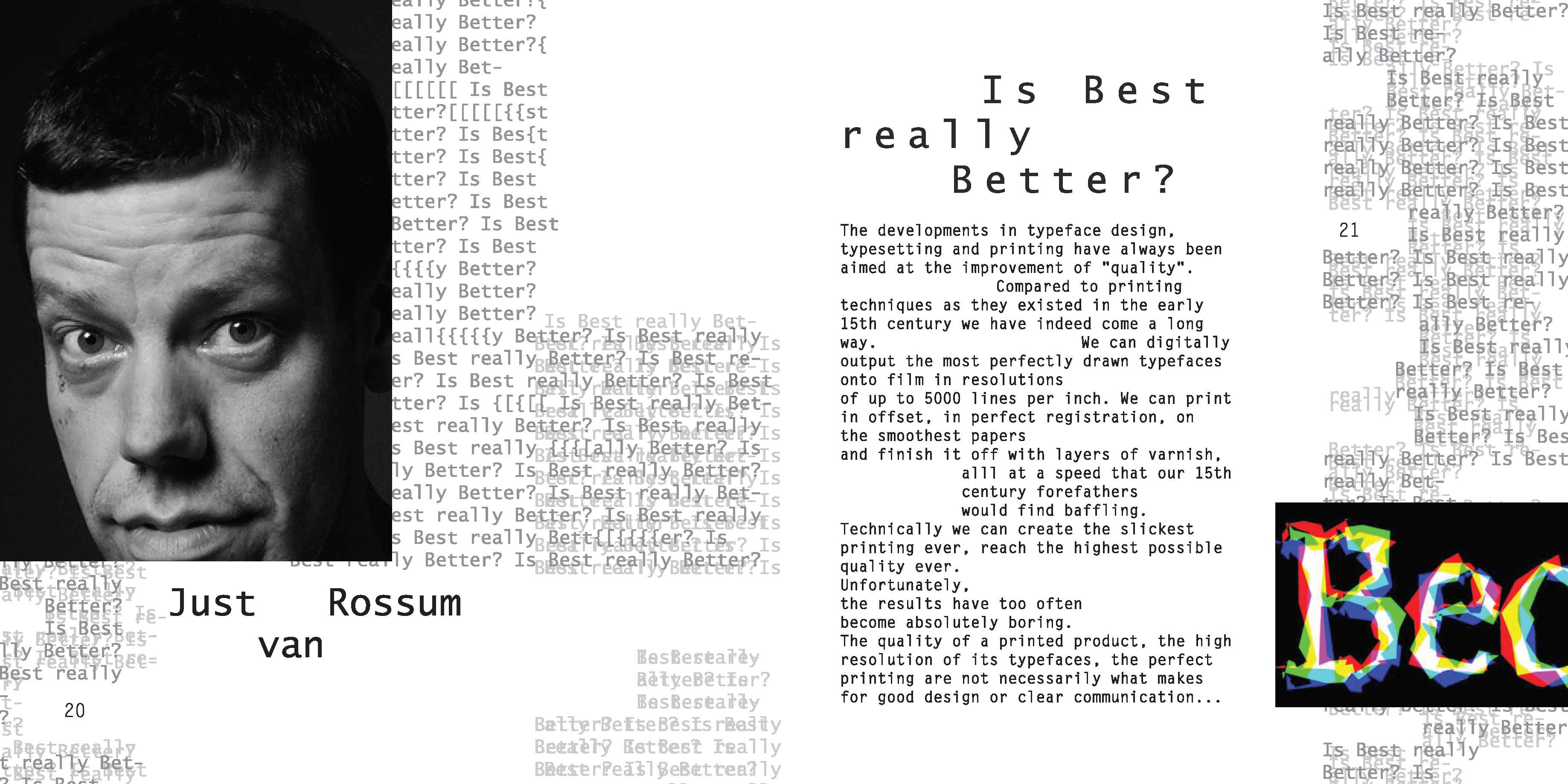 Opening Spread for the section on Just van Rossum.Inkjet printFall 2012