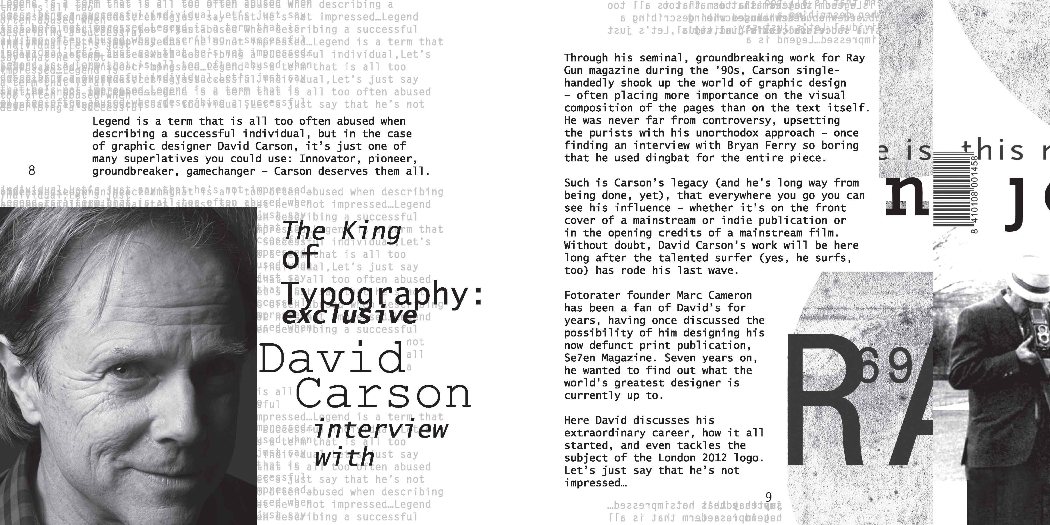 Opening Spread for the section on David Carson.Inkjet printFall 2012