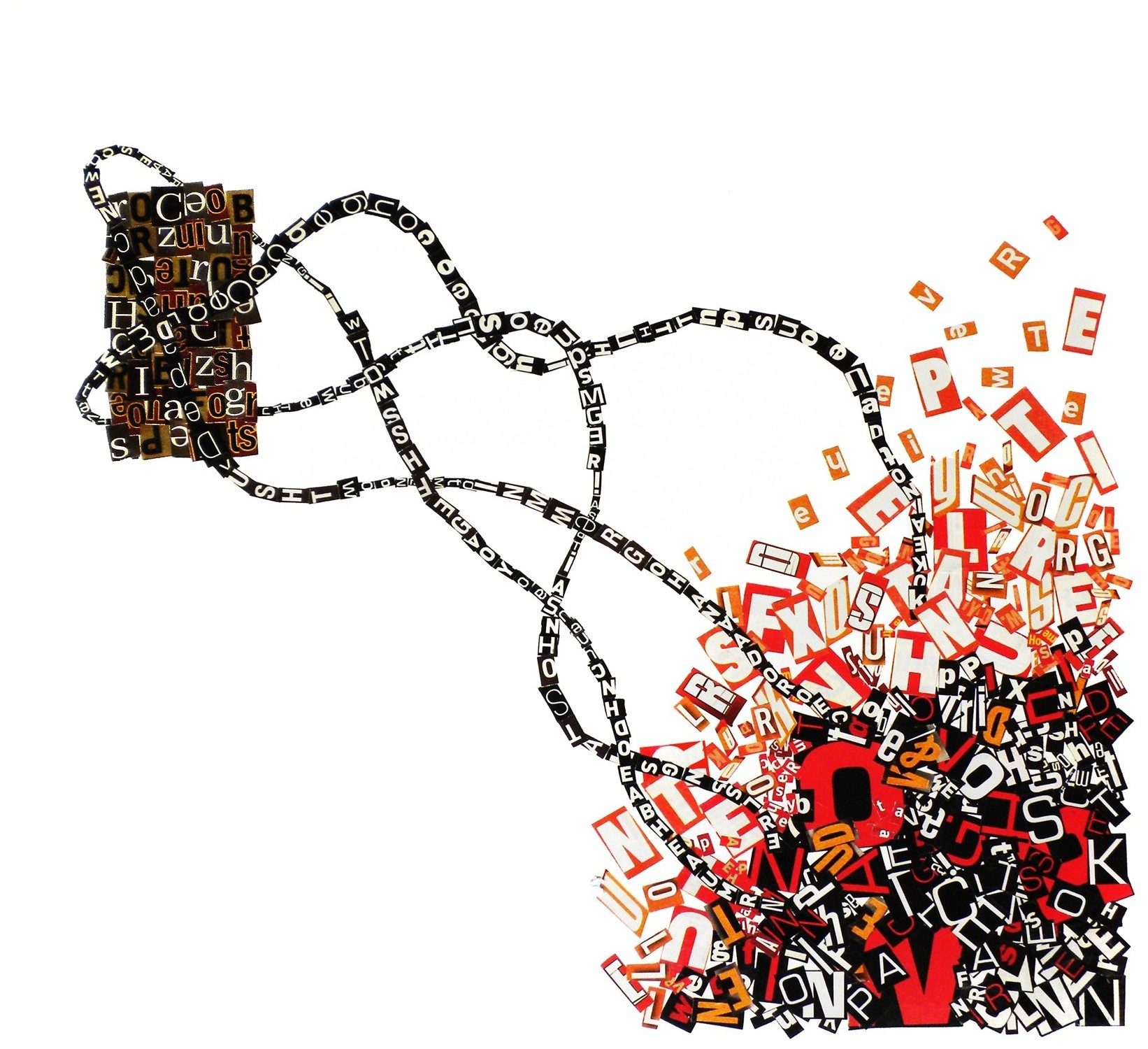 Abstract Letterform piece which deals with the anxiety of mis-association.Magazine Letter Cut-outs,Illustration BoardFall 2010