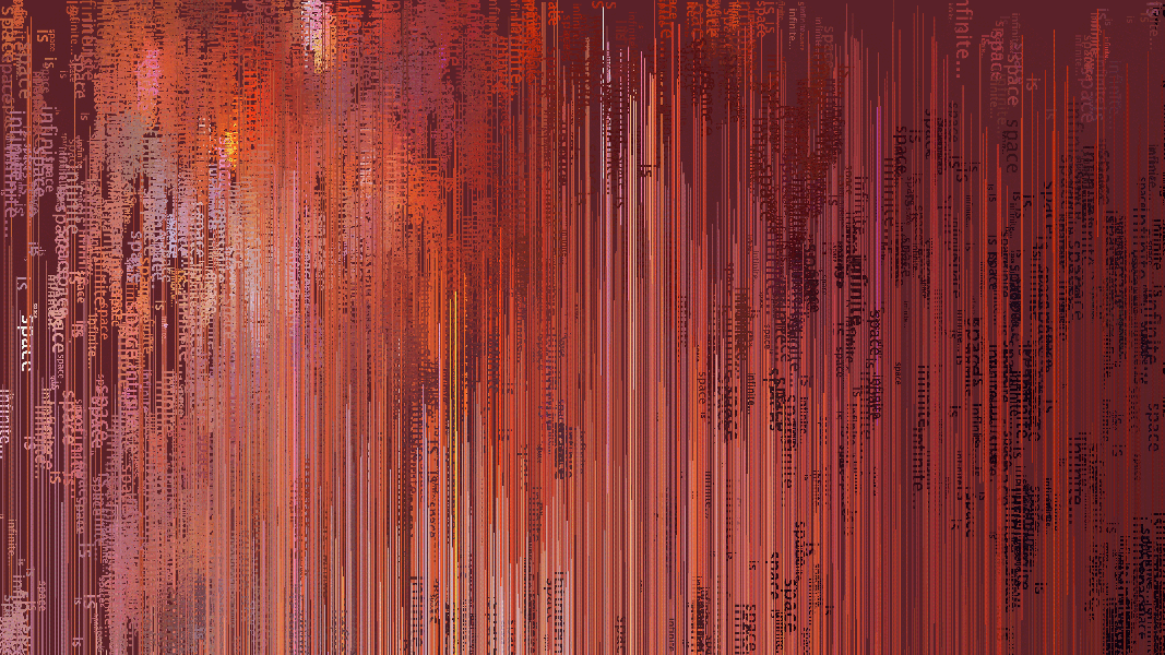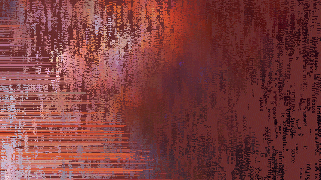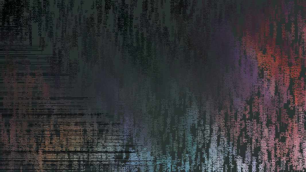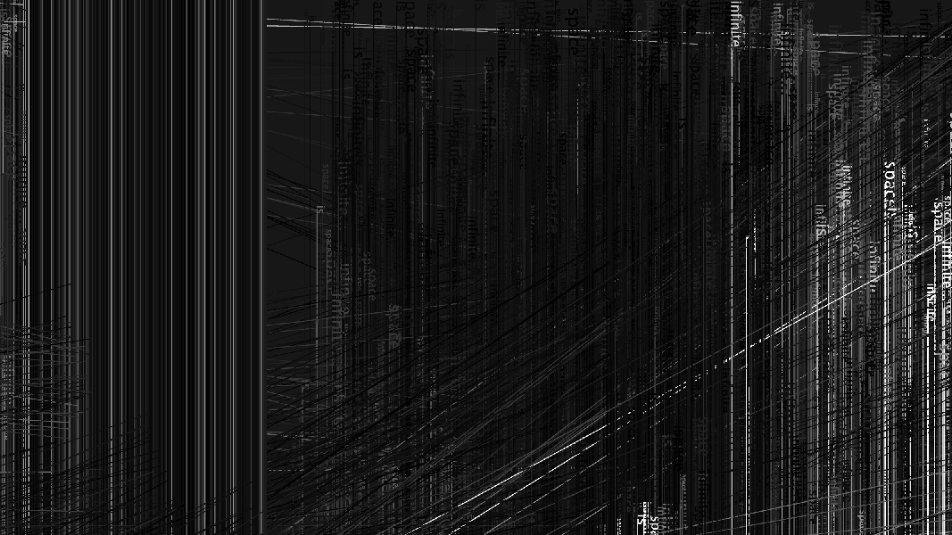 First of a series of generative pieces created by sampling colors from an image while randomly drawing line and text on the screen. Text reads "space is infinite..."PDF OutputFall 2013.